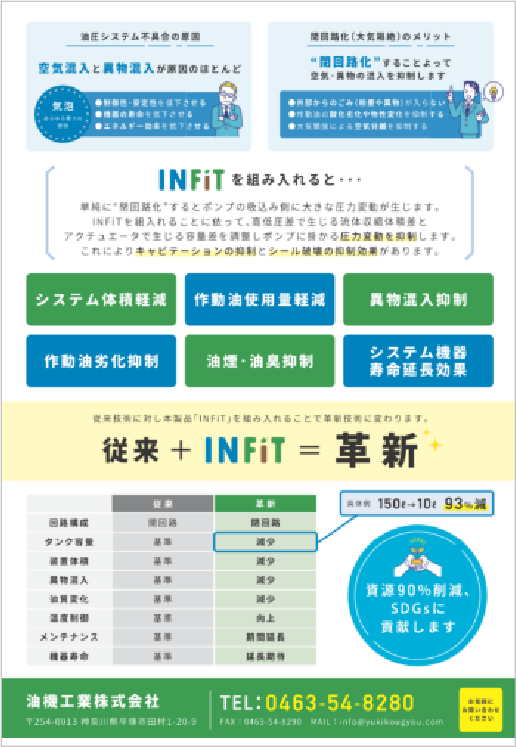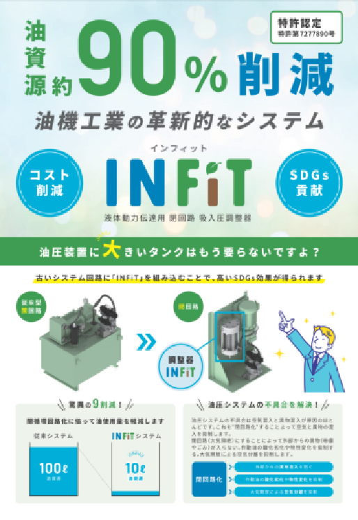 特殊油圧 Special hydraulic HOME > 特殊油圧 1978年から培い続けた特殊技術(特許油圧、センサリング、電気制御[PC、PLC、マイコン他])でお客様のお困りごとを解決します。 機械装置設計製作、特殊シンダー設計製作、お客様の「ああしたい」「こうしたい」にお応えします。 INFIT技術 ≫ 油圧装置 ≫ 油圧サーボ ≫ 自社ソフト ≫ INFIT技術 INFiT 紹介動画 技術動画 INFiT紹介CM INFiT 特徴紹介動画 INFiT 特徴 PDFデータダウンロード パンフレットダウンロード ▶ INFiT型 VS 従来型 温度比較データ ▶ 比較波形拡大 ▶ 油圧装置 油圧、給油ユニット類(中:制御含) 金型制御用120L油圧ユニット 15MPa水グリ簡易サーボ 食品機械用オイル滅菌装置 油圧、給油ユニット類(大) 工作機用2000L油圧ユニット 油圧サーボ 防音槽付き加振装置 直動型サーボ弁加振シリンダー ノズルフラッパー型サーボ弁加振シリンダー 加振制御、強度限界(破壊)試験、シリンダー高速高精度位置決め制御等に実績有り制御波形種類:正弦波、三角波、矩形波、台形波(任意入力ステップ波形)、重畳波 加振性能例 周波数:50Hz 振幅:±0.1mm 推力:2kN 周波数:15Hz 振幅:±5mm 推力:20kN 強度限界試験、インパルス、応力試験、高速高精度位置決め例 速度:5000mm/sec 推力:5kN 精度:0.1mm 速度:3000mm/sec 推力:20kN 精度:0.01mm ※制御ソフトにて速度、加速・減速度、位置等を任意に設定出来ます。 DDV型サーボ加帳 電動サーボ加帳 DDV加振、電動サーボ+ボールネジ加振装置等実績もございます。 自社ソフト 試験装置類(自社ソフト) PCデータロガー 入力8ch、1msサンプリング、各種任意設定可能 PC波形生成ソフト 正弦(sin)波、三角波、矩形波、各々の重畳波任意台形波、周波数、オフセットなど各種任意設定可能 高速位置決め装置用PC制御ソフト ステップ位置登録機能到達速度設定、加速・減速設定現在位置表示手動制御(速度任意設定)機能付き この他、当社では各種試験装置に応じて専用の制御ソフトやサンプリングソフト、 解析ソフトを各種用意しております、新規開発も致します。